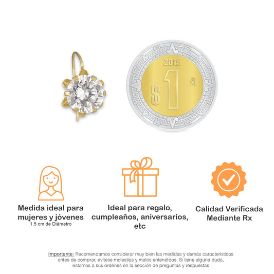 LPEAR004 Arete Arillo Oro Sólido 10K Modelo Zirconia Blanca 9 mm Redonda Base Flor 4286560976