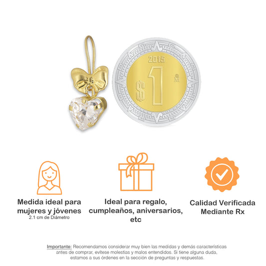 LPEAR013 Arete Arillo Oro Sólido 10K Modelo Moñito Troquelado con Zirconia Blanca Corazón Colgante 2531048877