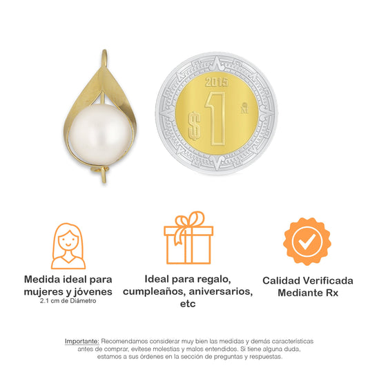 LPEAR015 Arete Arillo Oro Sólido 10K Modelo Gota Lisa con Perla 8 mm 2531187859