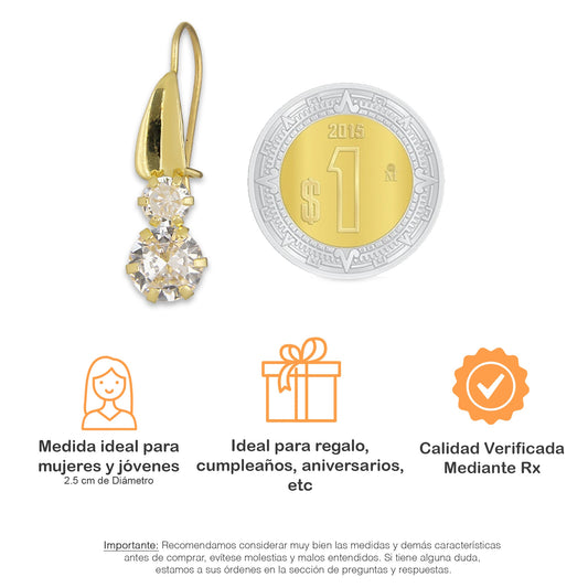 LPEAR016 Arete Arillo Oro Sólido 10K Modelo Hojita Triangular con 2 Zirconias Blancas Colgantes 2531187855