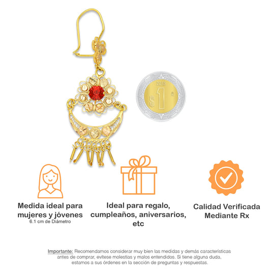 MR10AR054 Arete Arracada Oro Sólido 10K Modelo Romboide Articulado con Colgantes Diámetro 5.2 cm