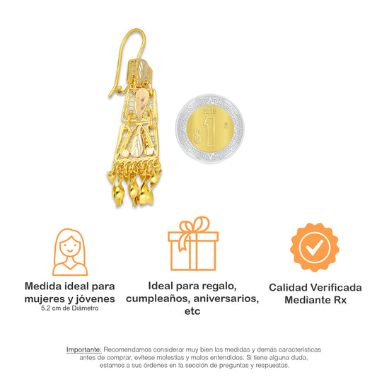 LPEAR016 Arete Arillo Oro Sólido 10K Modelo Hojita Triangular con 2 Zirconias Blancas Colgantes 2531187855