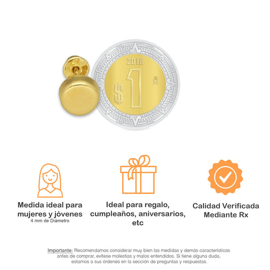 MR14AB004 Arete Broquel Oro Sólido 14K Modelo Botón Liso 4 mm de Diámetro