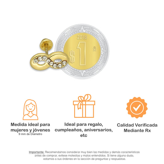 MR14AB008 Arete Broquel Oro Sólido 14K Modelo Infinito con Zirconias 9 mm de Diámetro