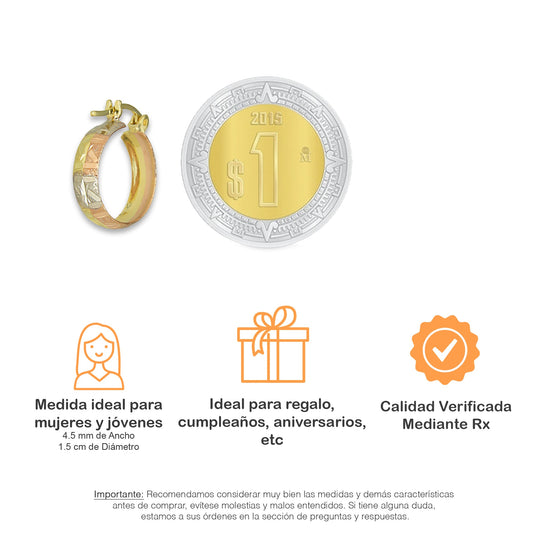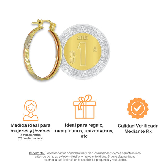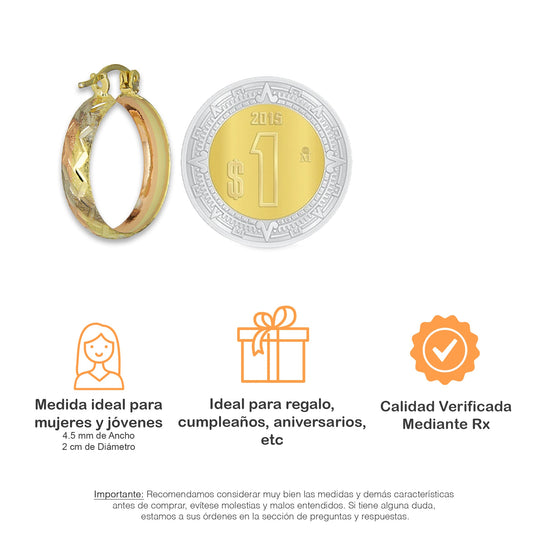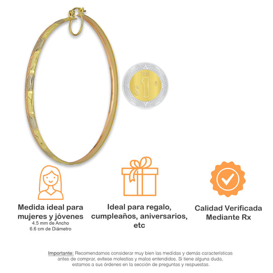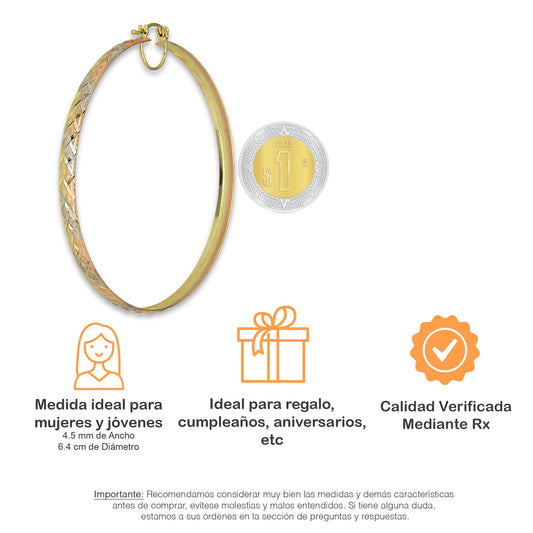 NR14AR018 Arete Arracada Oro Sólido 14K Florentino Diamantado Ancho 4.5 mm DIámetro 6.4 cm
