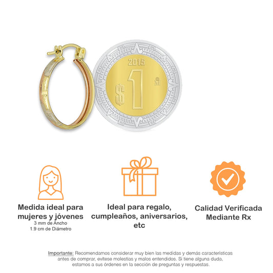 NR14AR003 Arete Arracada Oro Sólido 14K Florentino Diamantado Ancho 3 mm DIámetro 1.9 cm