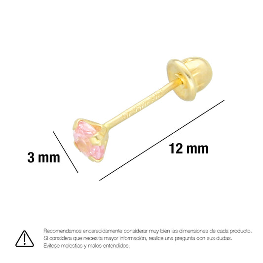 LPAUBR015 Aretes Broquel de Oro 10K Niñas o Mujer Zirc Kor 3mm 101r 1834390356