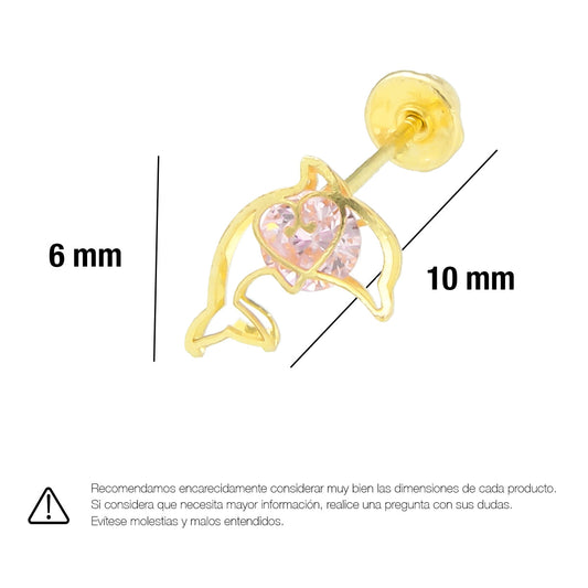 LPAUBR039 Aretes Broquel Oro 10K Niñas o Mujer Delfin 3D Mini 513A 1853041587