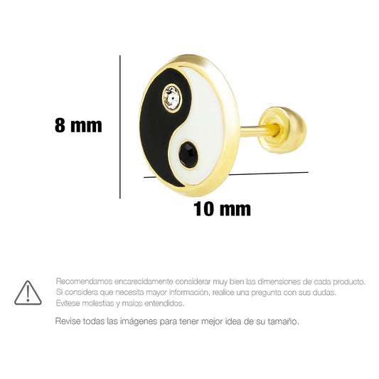 LPAUBR071 Aretes Broquel Oro 10K Niñas o Mujer Ying–Yang 491 1895709423