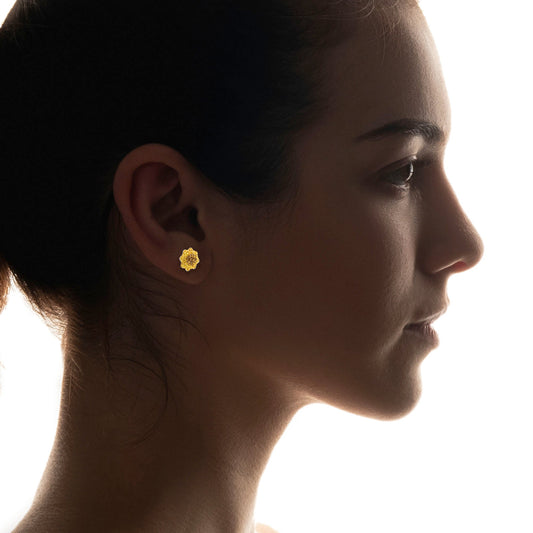 LPAP065 Arete Broquel Girasol ON Cristalitos en Plata .925 Taxco 2018806329