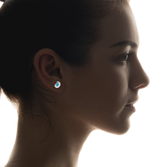 LPAP081 Arete Broquel Luna y Estrella Ópalo Azul Plata .925 Taxco 2040167055