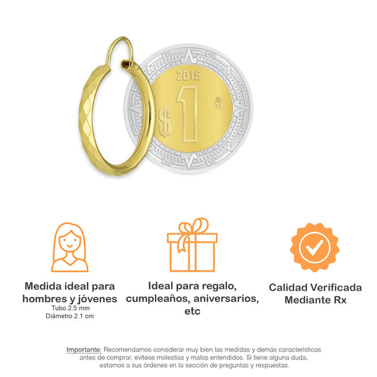 NR14AR023 Arete Arracada Oro Sólido 14K Tubo 2 mm Láser Florentino Diamantado DIámetro 2.4 cm