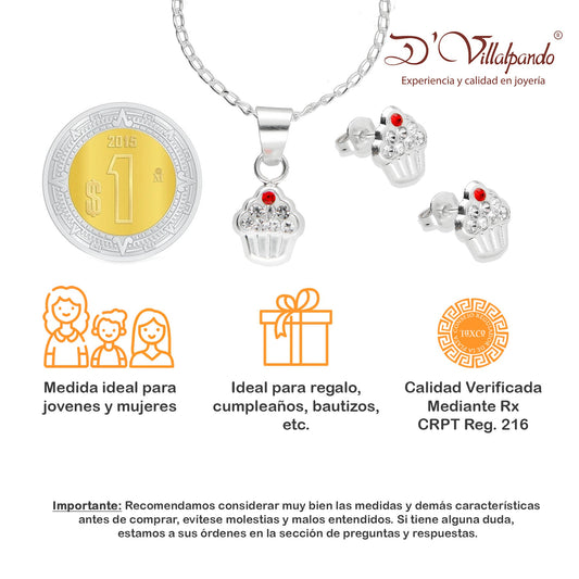 LPADJ020 Set Aretes + Dije + Cadena Cup Cake Cherry en Plata Ley .925 2778911724