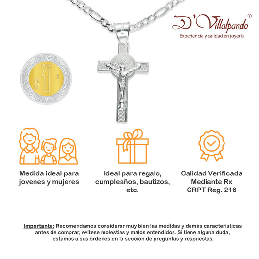 LPDP103 Dije Cruz Sn Benito 2 Vistas Mini + Cadena 45 cm Plata .925 Taxco 2031379545