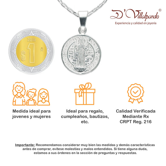 LPDP104 Medalla San Benito 1.5 x 2.3 cm + Cadena + Regalo Plata .925 Taxco Gro 2035836351