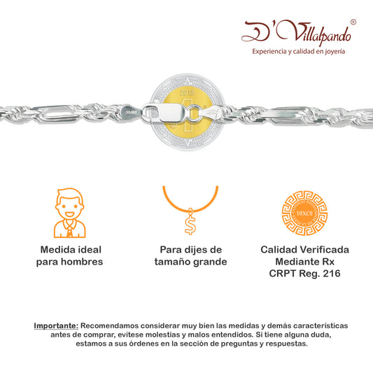 LPCU039-65 Cadena Torsal Fígaro 5 mm x 65 cm Plata .925 Taxco Gro. 3967276446