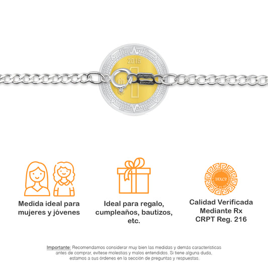 LPDPAU011 Cadena Oro Sólido 10K + Dije Medalla Oro Sólido 10K Virgen Redonda con Zirconias Radial Calado Amarillo 1.6 cm x 2.2 cm