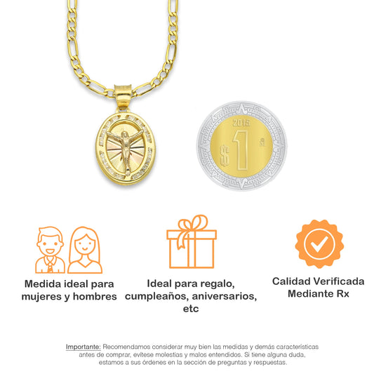 LPDPAU017 Cadena Oro Sólido 10K + Dije Medalla Oro Sólido 10K Cristo Oval Radial Florentino 1.4 cm x 2.4 cm