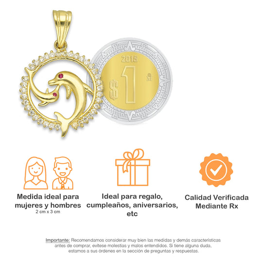 NR14DJ135 Dije Oro Sólido 14K Delfines Círculo Yin Yang 2 cm x 3 cm