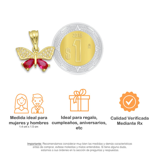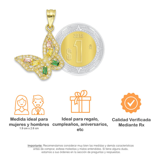 NR14DJ140 Dije Oro Sólido 14K Mariposa Baguette Multicolor 1.9 cm x 2.6 cm