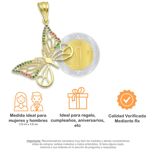 NR14DJ141 Dije Oro Sólido 14K Mariposa Calada Multicolor Grande 2.8 cm x 3.8 cm