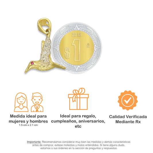 NR14DJ142 Dije Oro Sólido 14K Colibrí Alas Blancas 1.5 cm x 2.1 cm