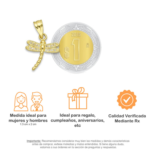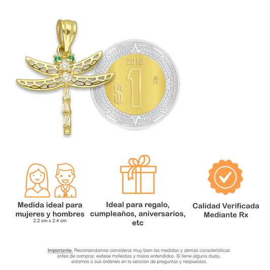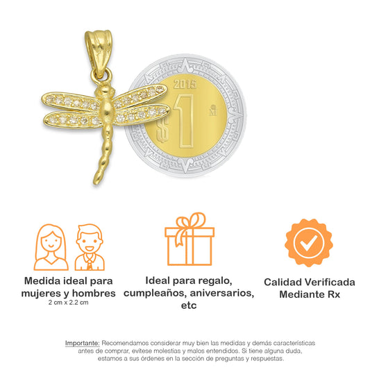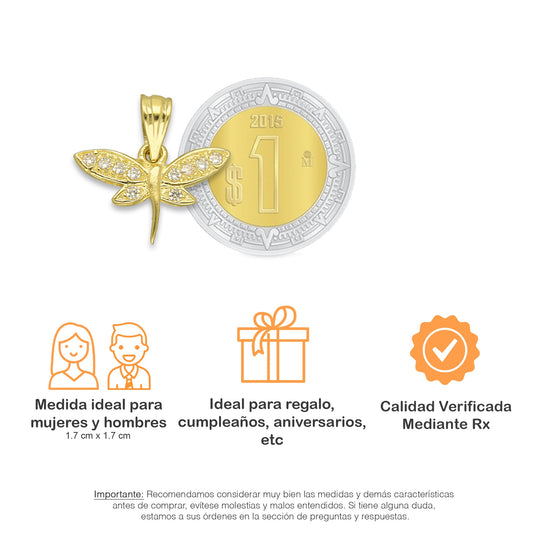 NR14DJ146 Dije Oro Sólido 14K Libélula con Zirconias 1.3 cm x 2 cm