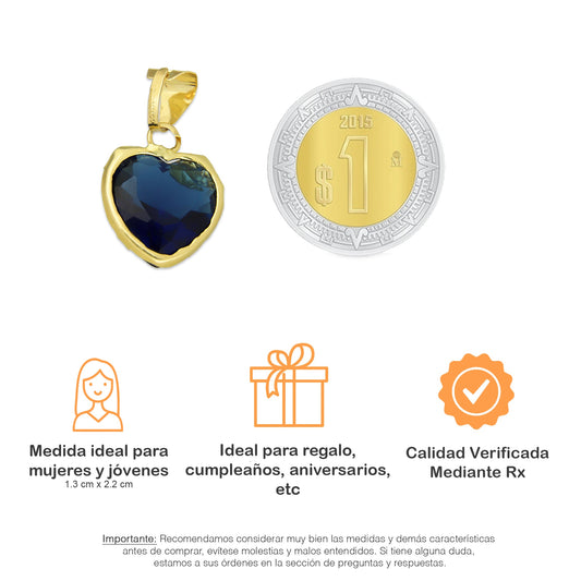 MR10DP102 Cadena Oro Sólido 10K + Dije Oro Sólido 10K EM Corazón con Bisel Liso Azul 1.3 cm x 2.2 cm