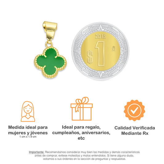 MR10DP105 Cadena Oro Sólido 10K + Dije Oro Sólido 10K EM Trébol Esmaltado Verde 1 cm x 1.9 cm