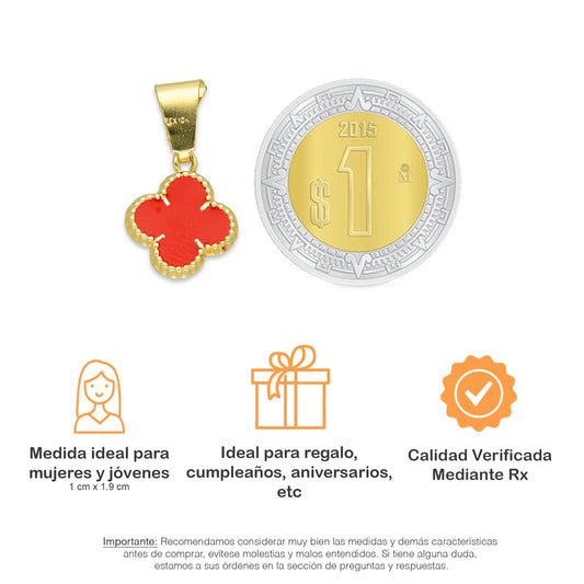MR10DP106 Cadena Oro Sólido 10K + Dije Oro Sólido 10K EM Trébol Esmaltado Rojo 1 cm x 1.9 cm