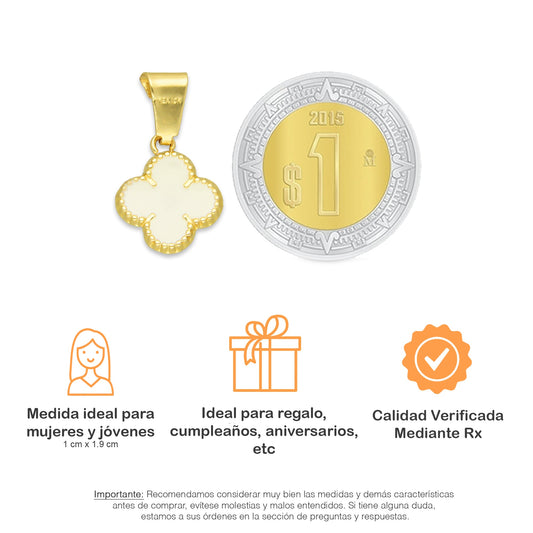 MR10DP107 Cadena Oro Sólido 10K + Dije Oro Sólido 10K EM Trébol Esmaltado Blanco 1 cm x 1.9 cm