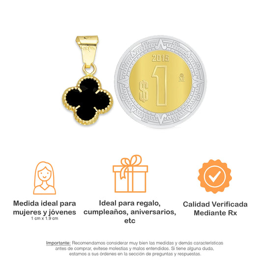 MR10DP108 Cadena Oro Sólido 10K + Dije Oro Sólido 10K EM Trébol Esmaltado Negro 1 cm x 1.9 cm