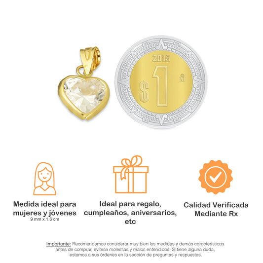 MR10DP103 Cadena Oro Sólido 10K + Dije Oro Sólido 10K EM Corazón con Bisel Liso Blanco 1.3 cm x 2.2 cm