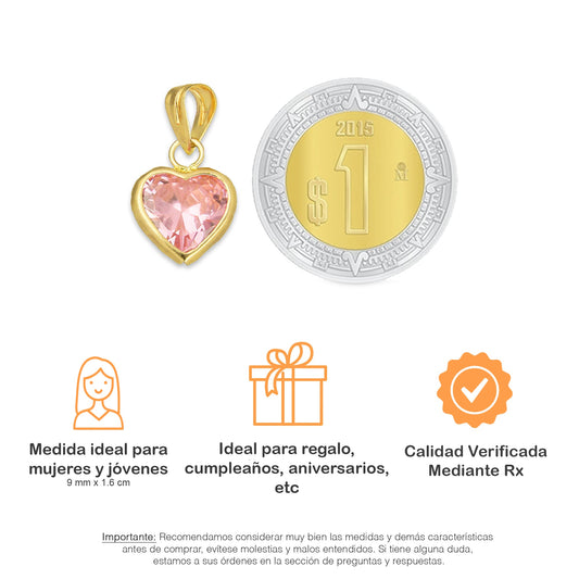 MR10DJ205 Dije Oro Sólido 10K EM Corazón con Bisel Liso Rosa 9 mm x 1.6 cm