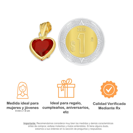 MR10DJ206 Dije Oro Sólido 10K EM Corazón con Bisel Liso Rojo 9 mm x 1.6 cm