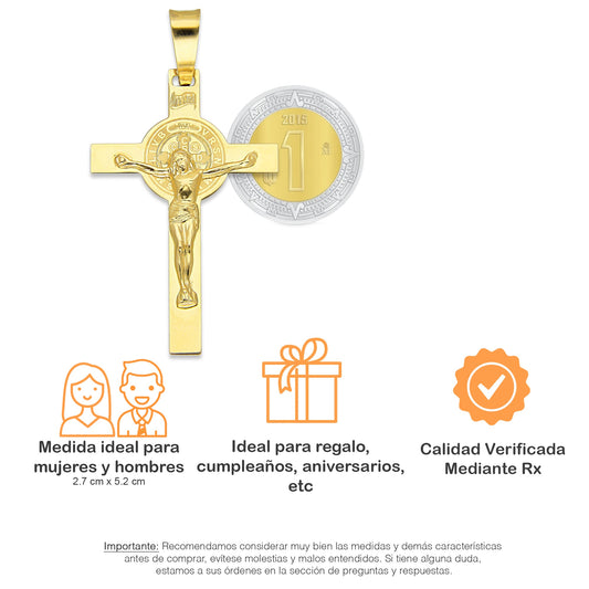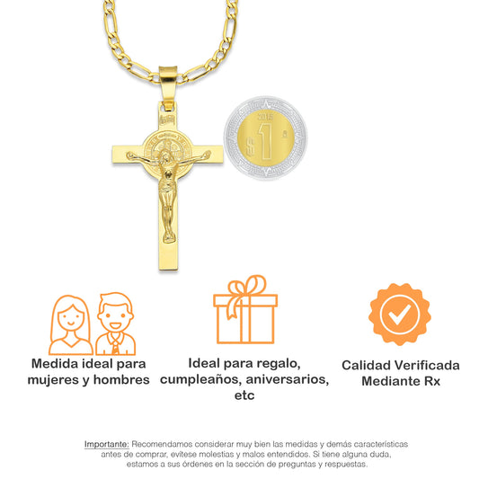 MR10DP094 Cadena Oro Sólido 10K + Dije Oro Sólido 10K EMF10 Cristo Grande Doble Vista Plana 2.7 cm x 5.2 cm