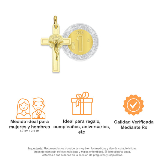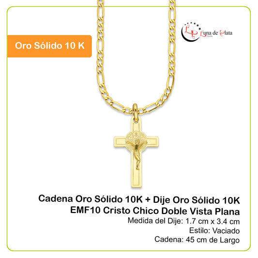 MR10DP095 Cadena Oro Sólido 10K + Dije Oro Sólido 10K EMF10 Cristo Chico Doble Vista Plana 1.7 cm x 3.4 cm