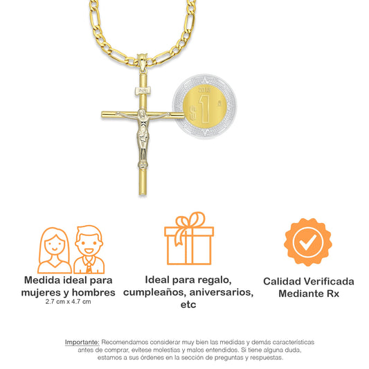 MR10DP093 Cadena Oro Sólido 10K + Dije Oro Sólido 10K EMF10 Cristo Tubular 2.7 x 4.7 cm
