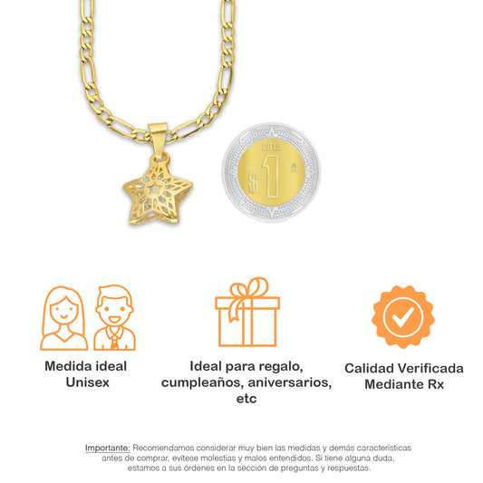 MR14DP080 Cadena Oro Sólido 10K + Dije Oro Sólido 14K EM Estrella 3D Jail 1.9 cm x 2.1 cm