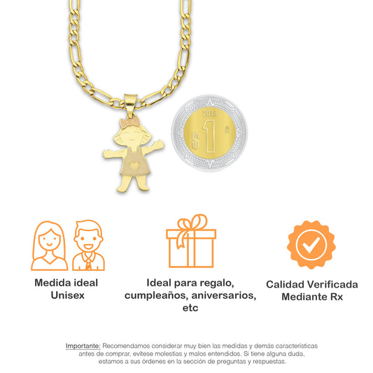 MR14DP086 Cadena Oro Sólido 10K + Dije Oro Sólido 14K EM Niña 1.6 cm x 2.6 cm