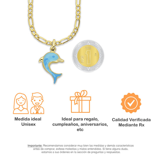 MR14DP087 Cadena Oro Sólido 10K + Dije Oro Sólido 14K EM Delfin Ópalo Azul 1.5 cm x 2.7 cm