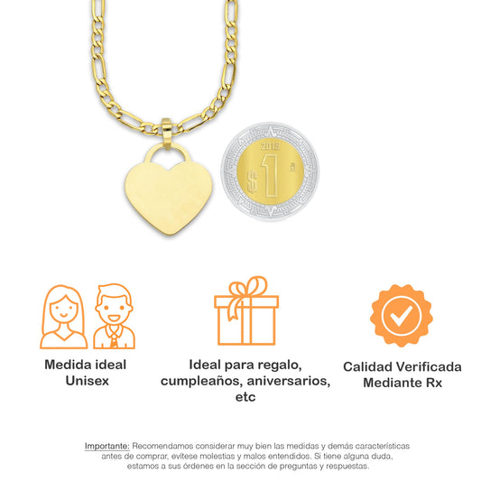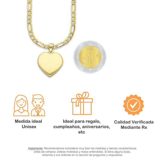 MR14DP089 Cadena Oro Sólido 10K + Dije Oro Sólido 14K EM Corazón Plano Liso 1.8 cm x 2.5 cm