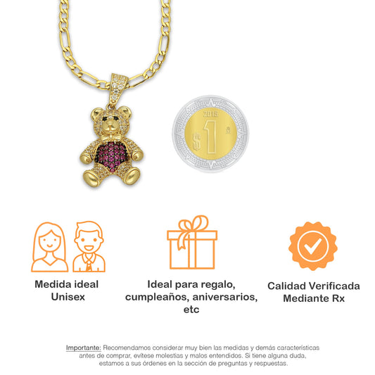 MR14DP090 Cadena Oro Sólido 10K + Dije Oro Sólido 14K EM Oso 3D Panza Rosa 1.5 cm x 2.9 cm