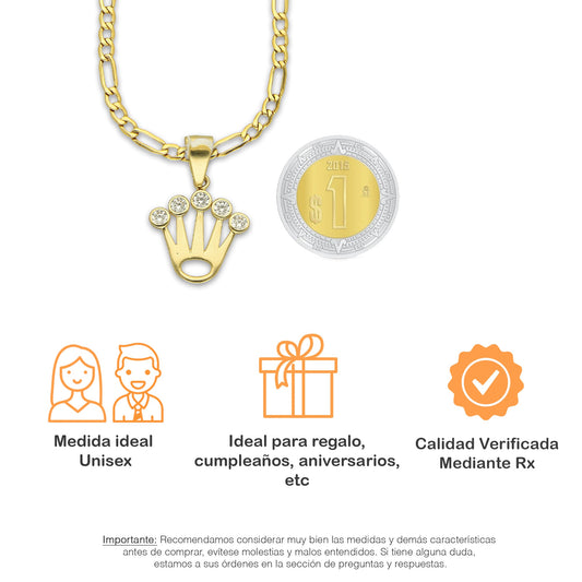 MR14DP092 Cadena Oro Sólido 10K + Dije Oro Sólido 14K EM Corona Lisa Rlx 1.6 cm x 2.4 cm