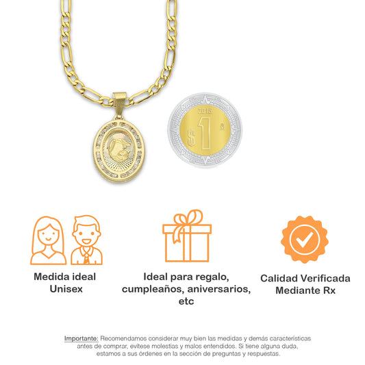 MR14DP081 Cadena Oro Sólido 10K + Dije Oro Sólido 14K EM Medalla Ovalada Bautizo 1.3 cm x 2.5 cm
