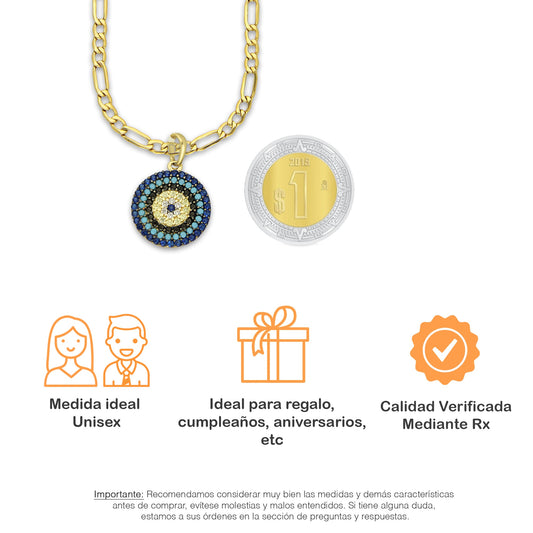 MR14DP082 Cadena Oro Sólido 10K + Dije Oro Sólido 14K EM Ojo Turco Orilla Azul 1.4 cm x 2.1 cm