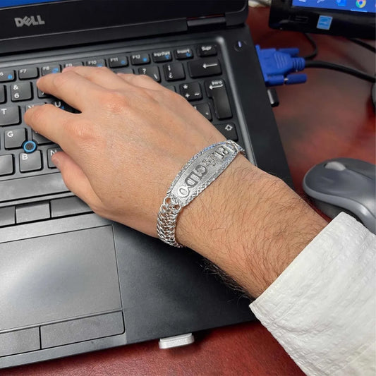 Precio habitual A partir de $ 567.31 MXNPrecio habitualPrecio unitario / por$ 722.18 MXNPrecio de oferta A partir de $ 567.31 MXNLPPN004 Esclava Gusi Colgante San Benito Grabado Laser 16 Cm de Largo Plata .925