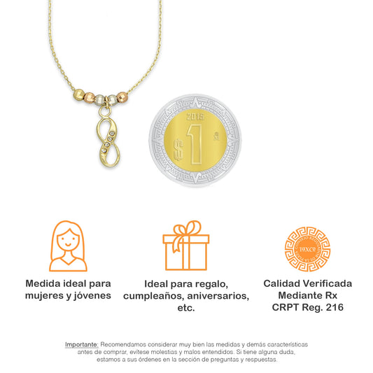 MR10G001 Gargantilla Para Dama Oro Sólido 10K EMF10 Súper Ligera Fantasy Mod Bolitas Facetadas Infinito 40 cm