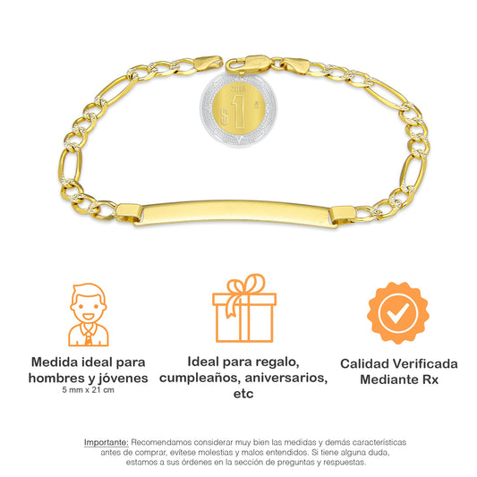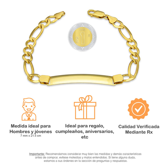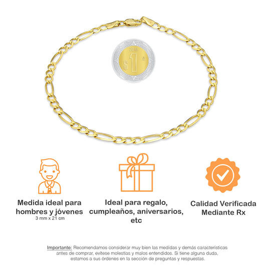 MR10PC043 Pulsera Para Caballero Oro Sólido 10K Mod Figaro 3*1 Lisa 3 mm x 21 cm