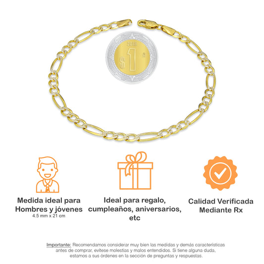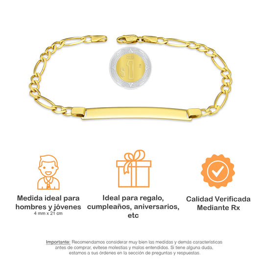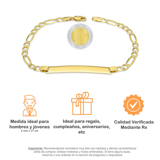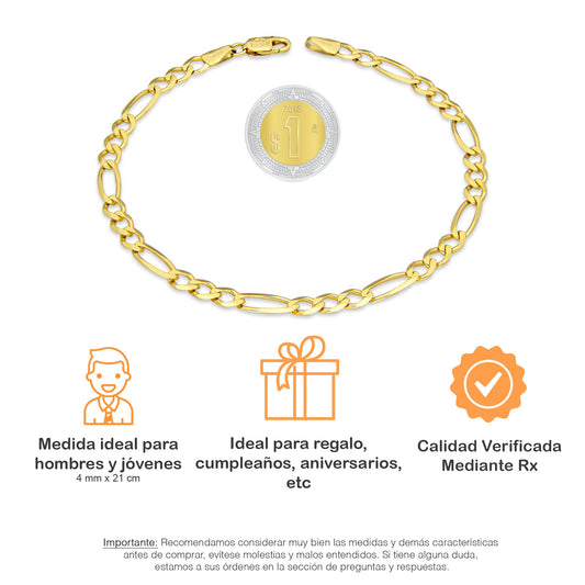 MR10PC044 Pulsera Para Caballero Oro Sólido 10K Mod Figaro 3*1 Lisa 4 mm x 21 cm